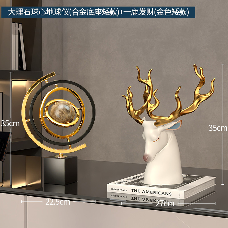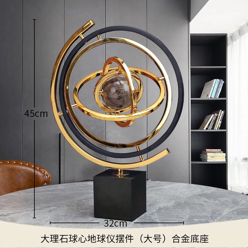 轻奢高档地球仪客厅摆件美式家居玄关办公室金属电视柜工艺装饰品