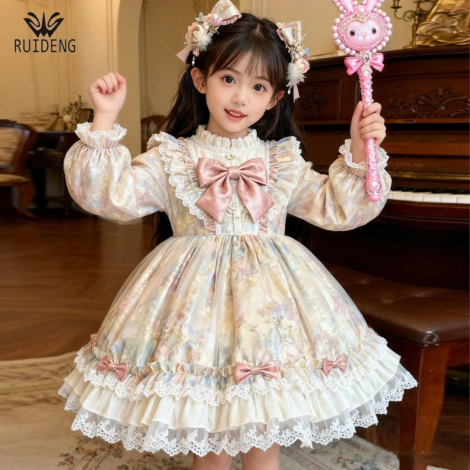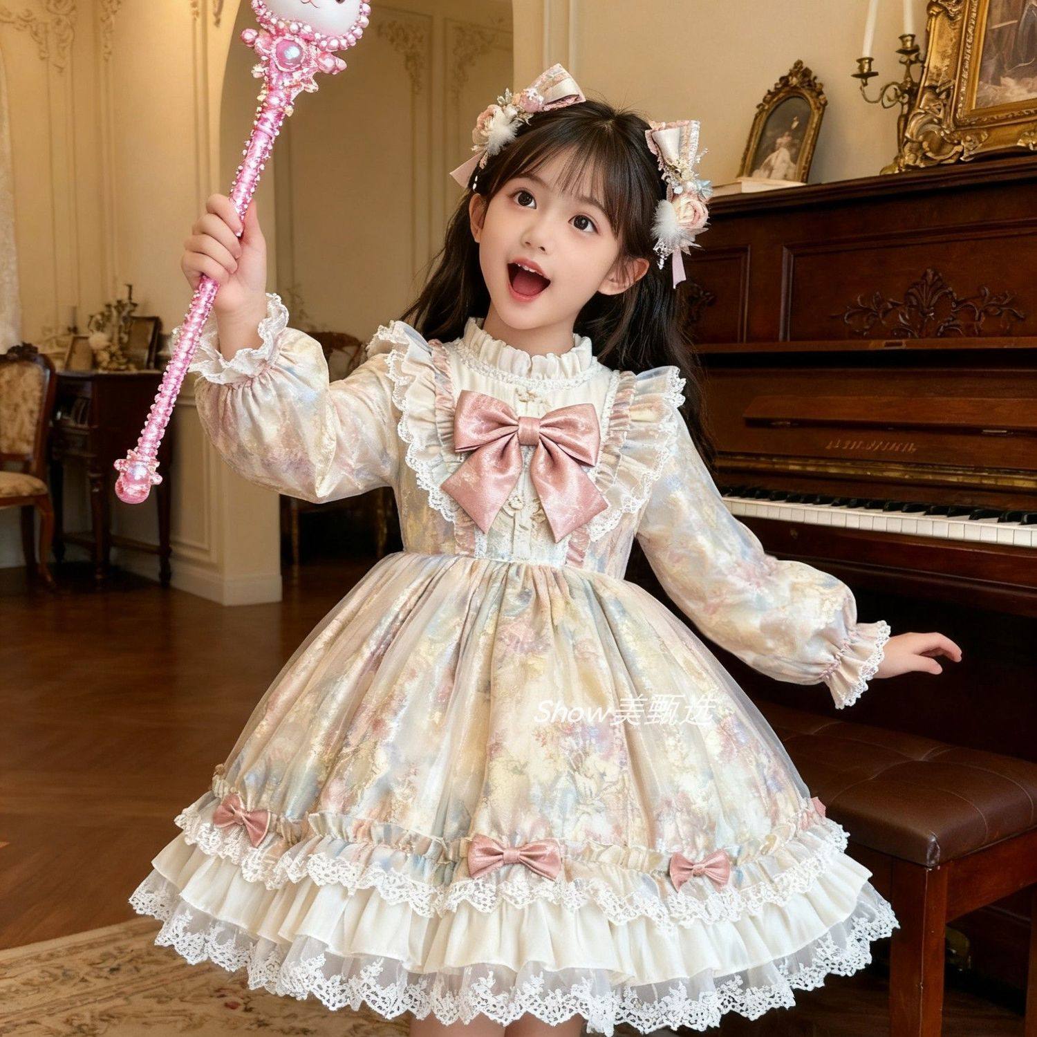 原创蝴蝶结公主裙古风蓬蓬裙新款女童洛丽塔宫廷连衣裙儿童礼服