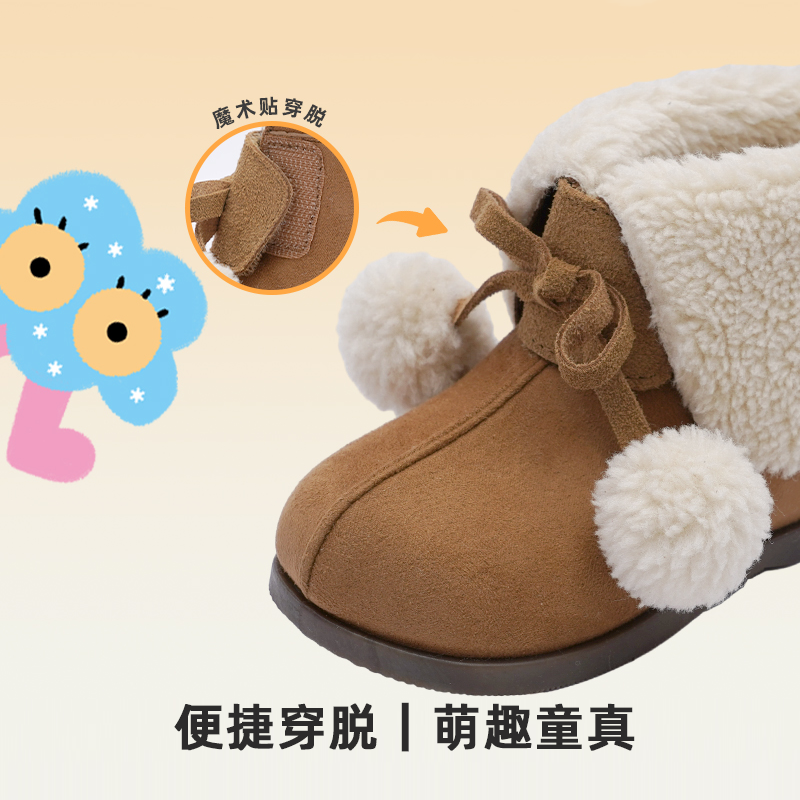 TOPSTAR儿童雪地靴冬季棉靴毛球加绒短靴女童时尚毛毛靴宝宝靴子