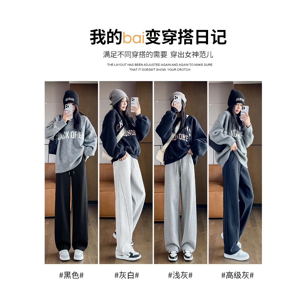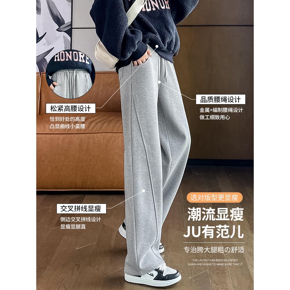 窄版香蕉裤女春秋冬季2025休闲直筒卫裤阔腿大码运动弯刀加绒裤子