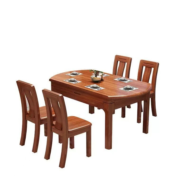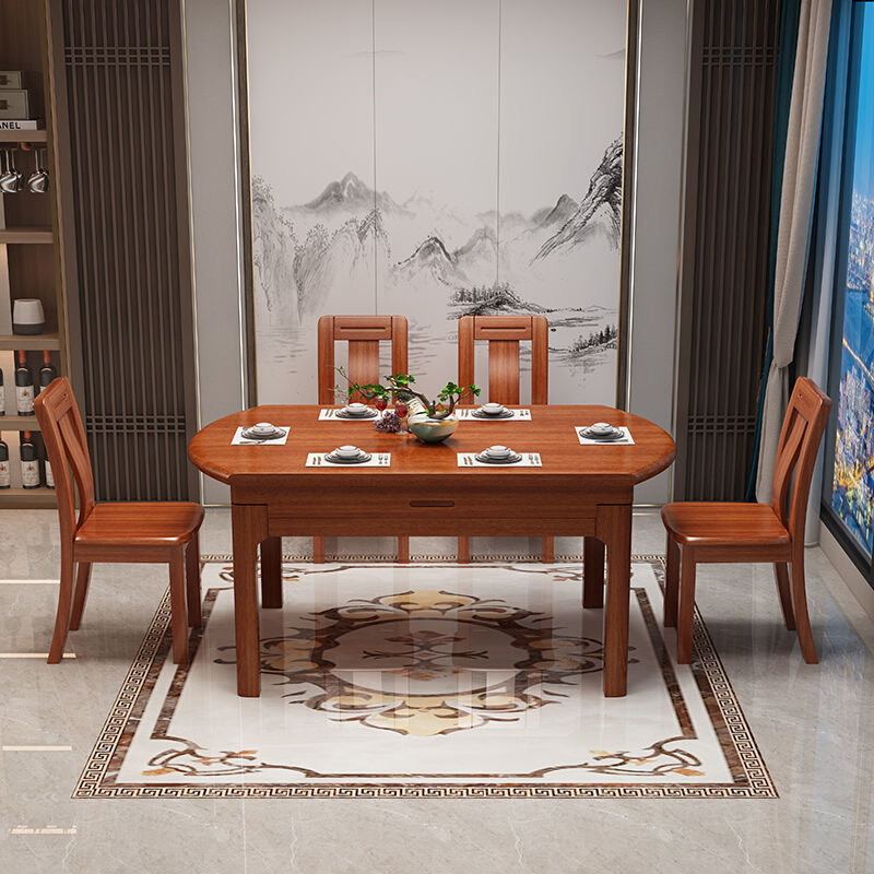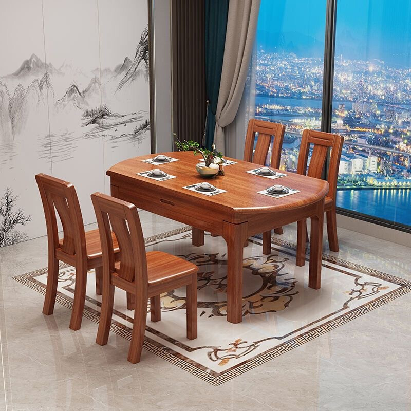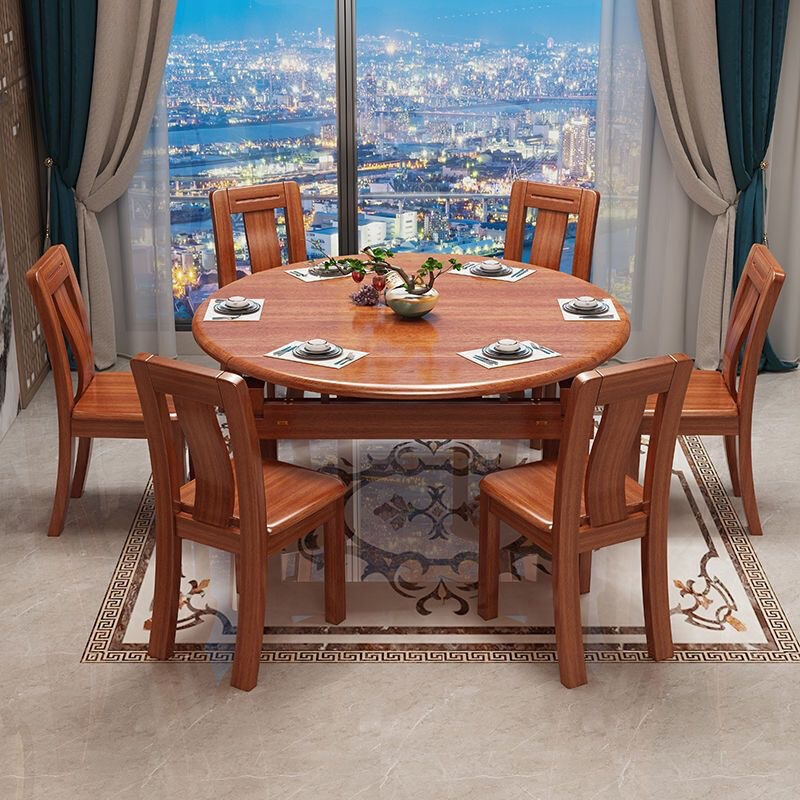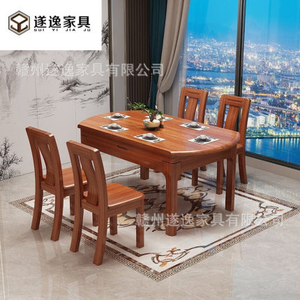 新中式胡桃木全实木餐桌椅组合圆形可伸缩折叠现代简约小户型家具