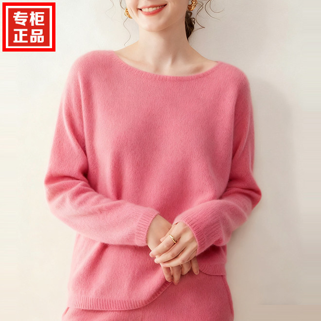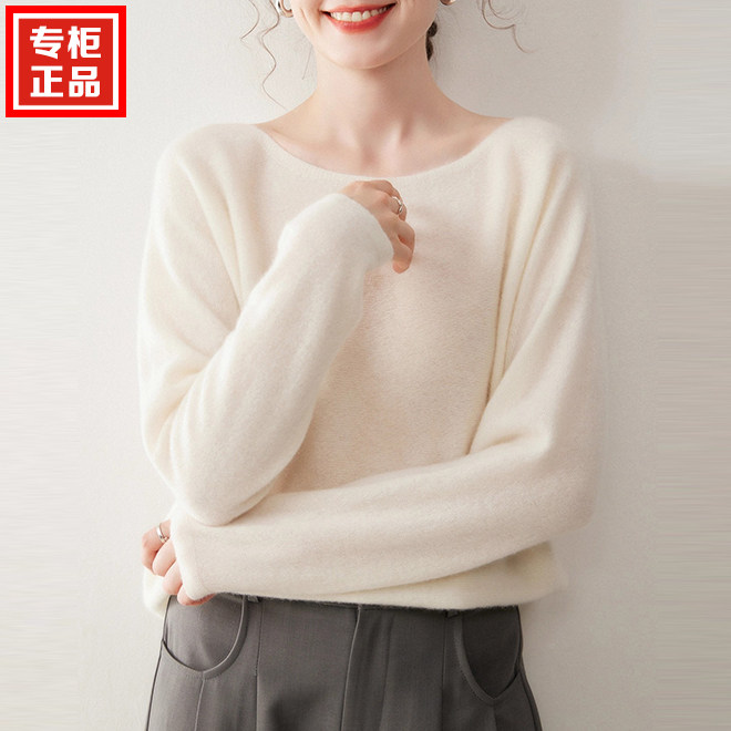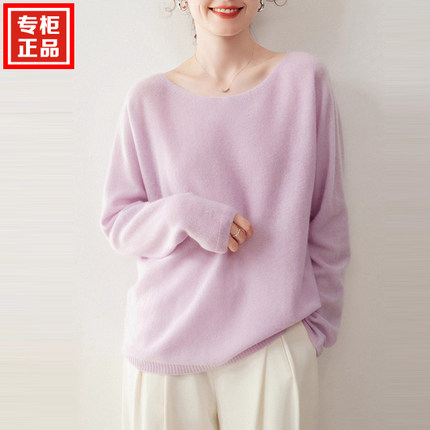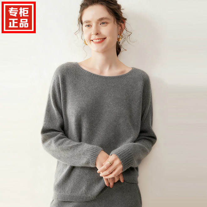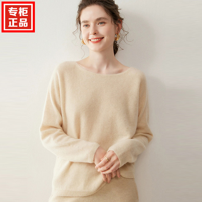 慵懒风无缝圆领山羊绒衫女