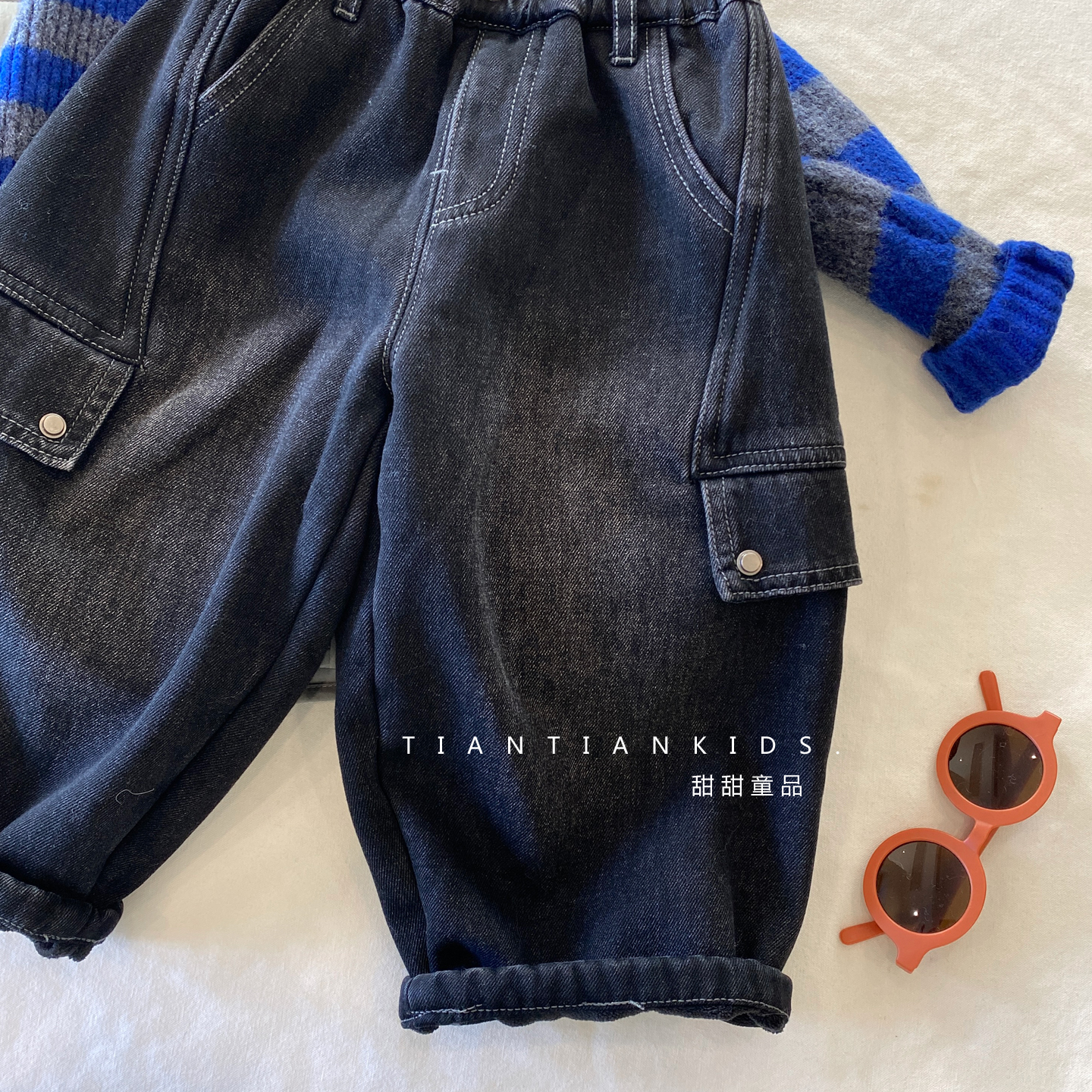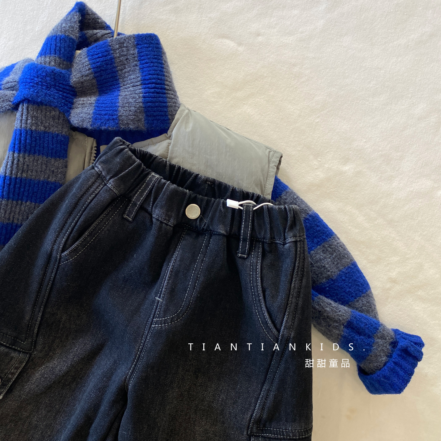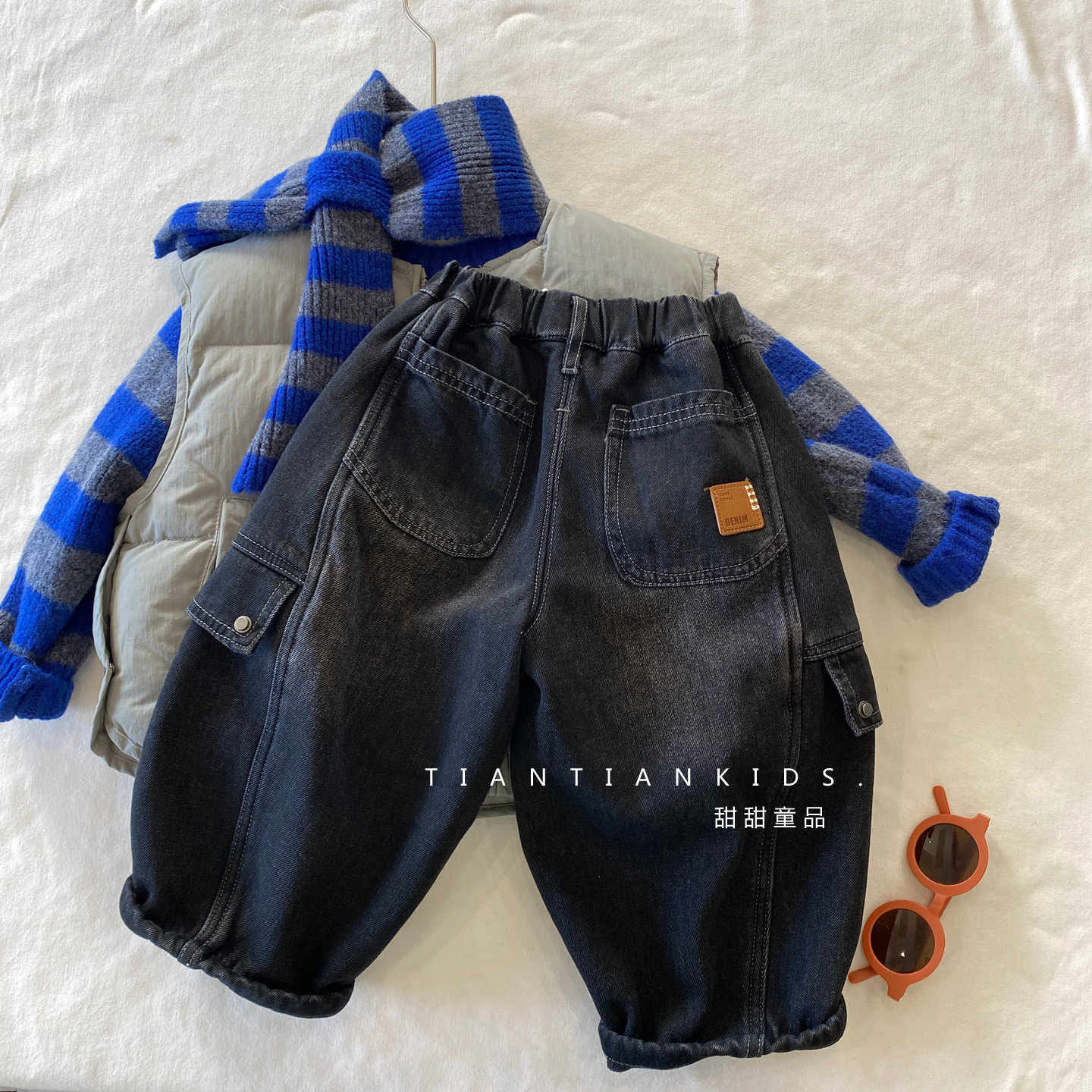 【我是小童】男童韩版工装牛仔裤秋冬加绒萝卜裤宽松长裤女童