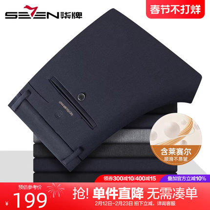 【含莱赛尔天丝】柒牌男秋冬裤子2025新款男士商务直筒弹力休闲裤