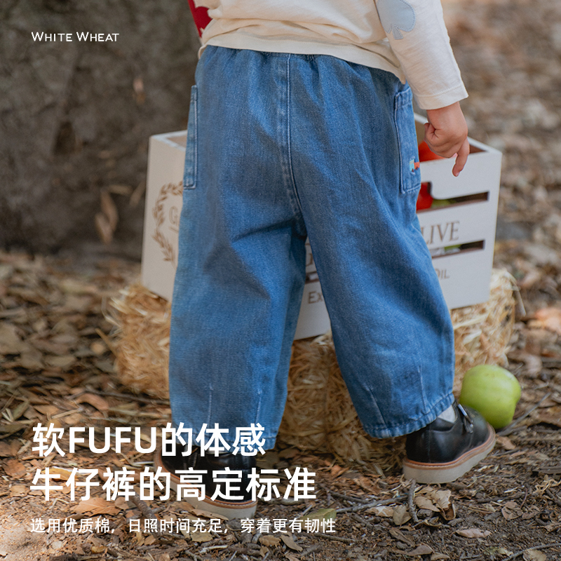 whitewheat宝宝2025春秋新款长裤男孩刺绣纯棉裤子女童时髦牛仔裤