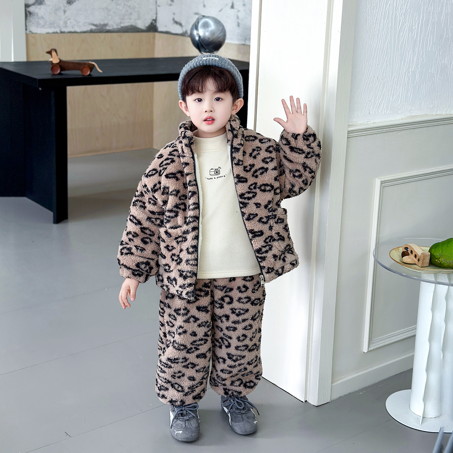 男童加绒加厚家居服套装2025新款儿童冬季保暖睡衣宝宝夹棉法兰绒