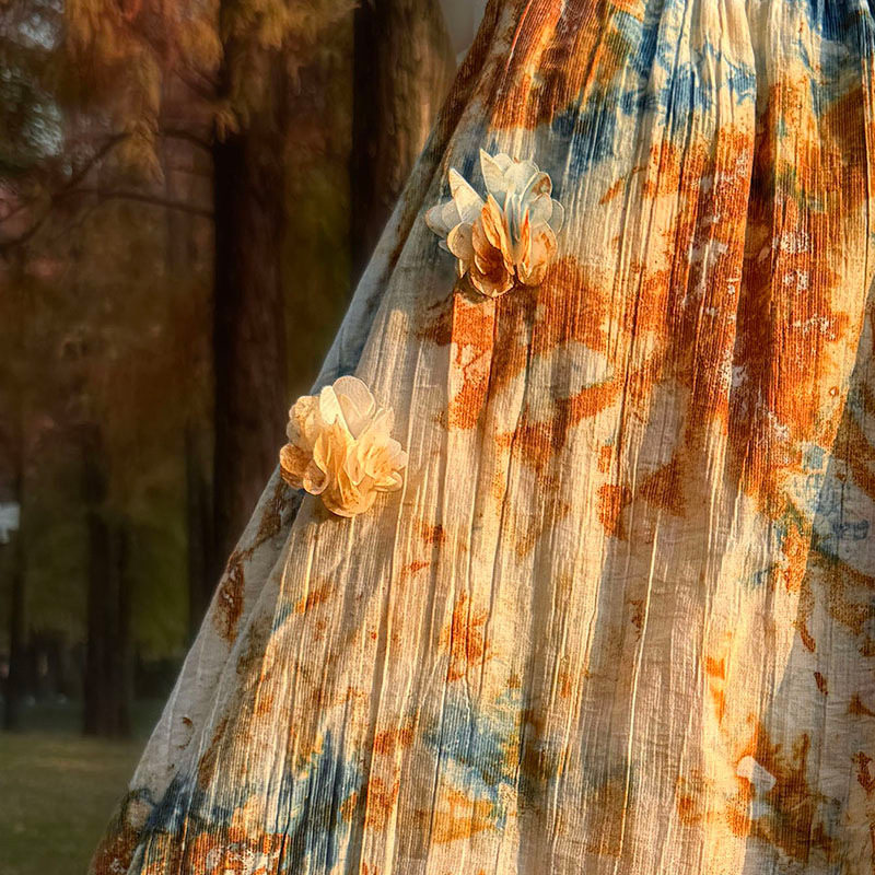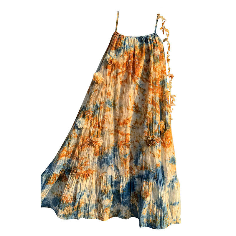 亲子装云南古法铁锈扎染吊带裙母女装连衣裙多巴胺黄昏沙滩裙