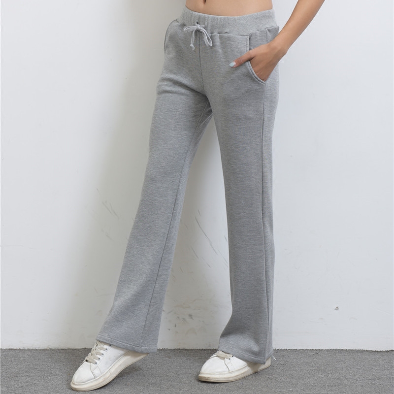 春秋微喇叭裤女长裤宽松新款韩版高腰裤子纯棉运动裤女薄款休闲裤