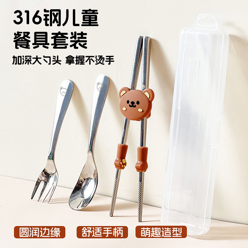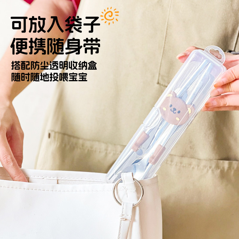 316不锈钢筷子勺子儿童餐具套装宝宝训练筷练习筷便携餐具收纳盒