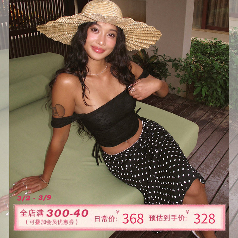 ITSNIKAR 复古黑色波点半身裙女夏赫本风a字半裙蕾丝拼接中长裙子