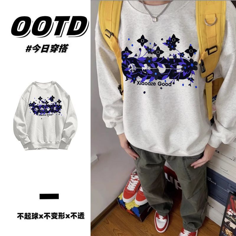 2025秋冬国潮花卉印花套头圆领卫衣男女休闲宽松情侣加绒加厚上衣