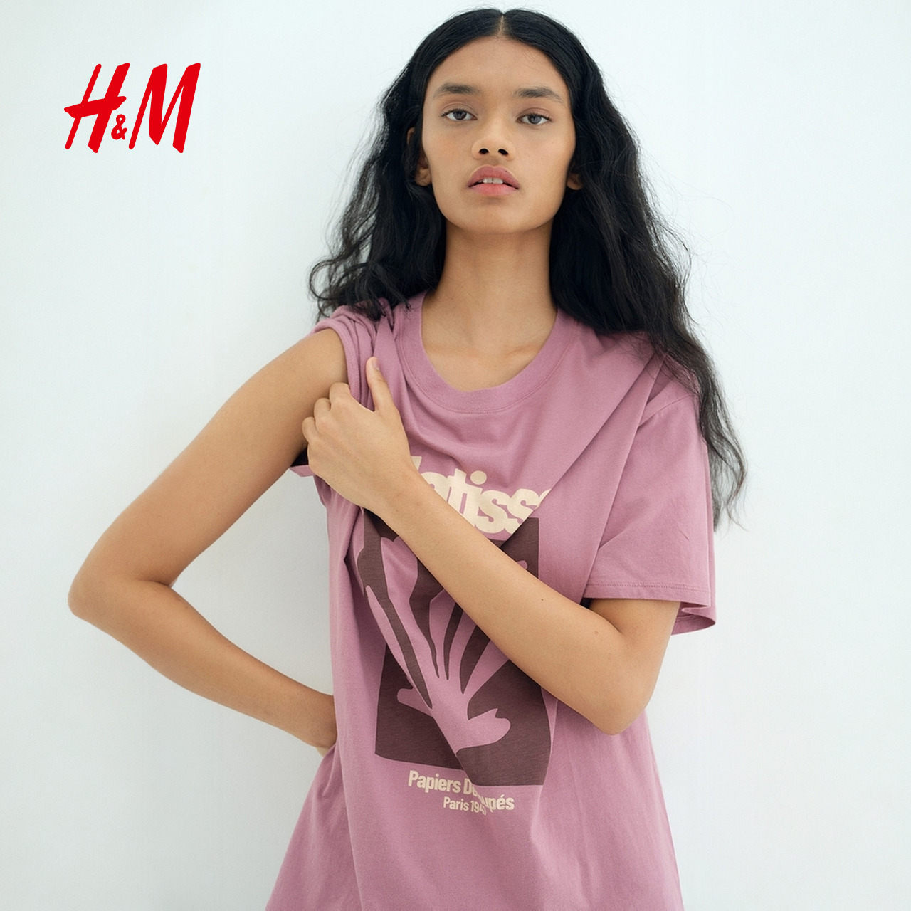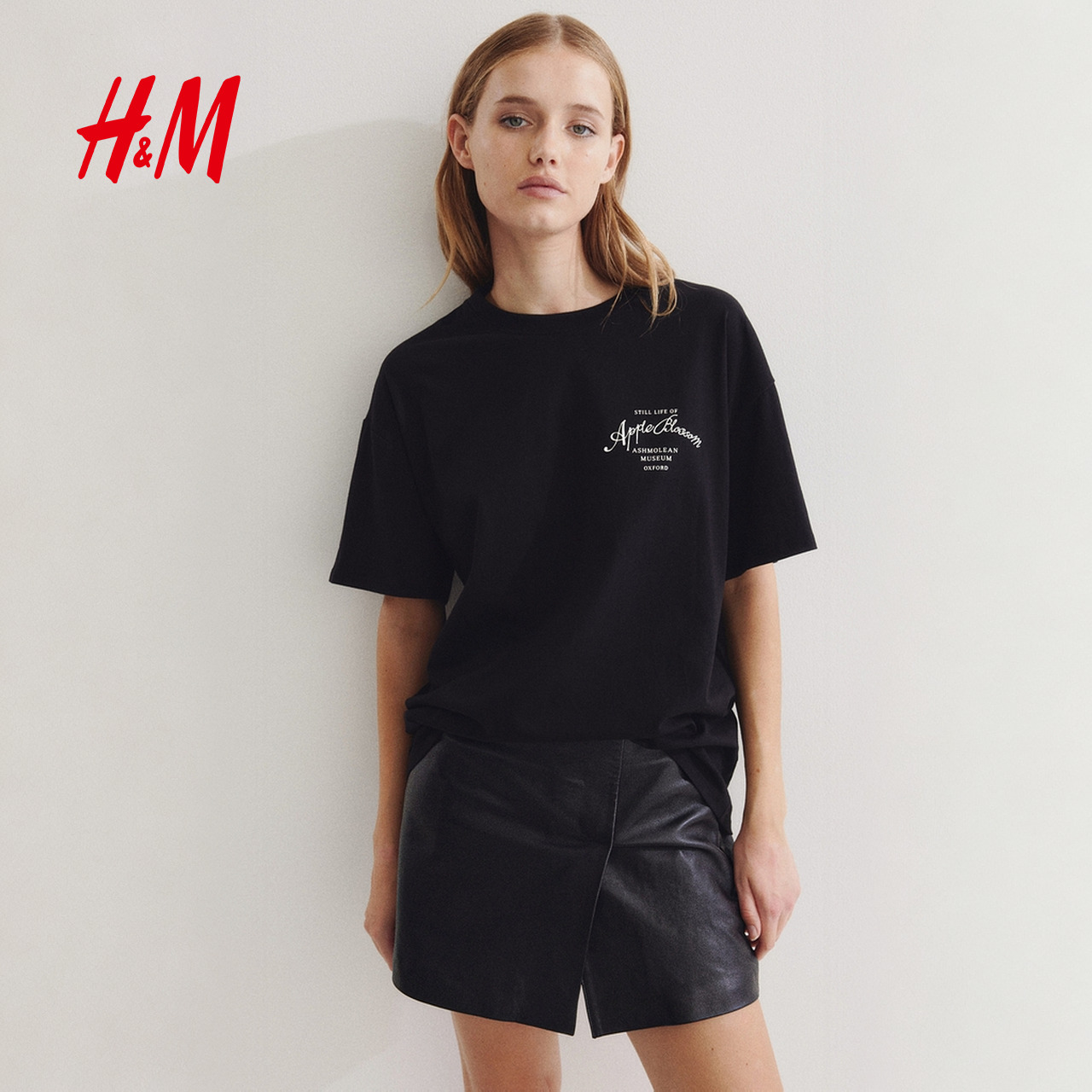 HM2025夏季新款女装时尚休闲百搭大廓形印花T恤1296052