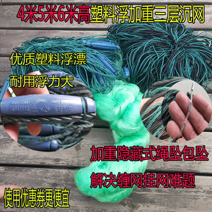 进口加粗鱼网粘网三层沉网浮网塑料浮绳坠包坠加重流水网粘网丝网