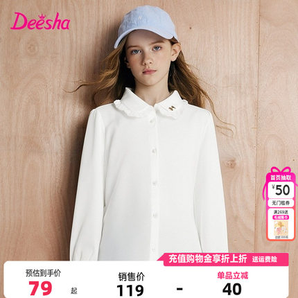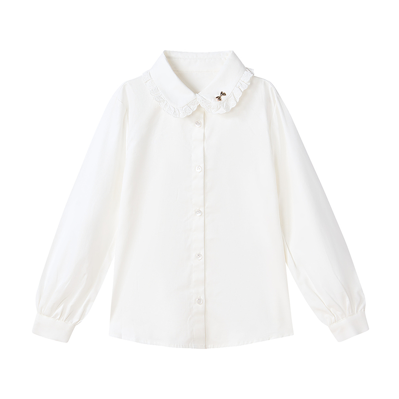 笛莎童装女童长袖衬衫秋季新款中大童儿童女孩白色娃娃领上衣纯棉