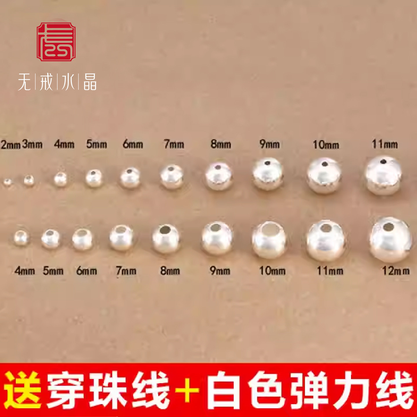 『无戒』S925纯银diy手串珠子纯银散装光珠转运散珠隔珠银饰配件