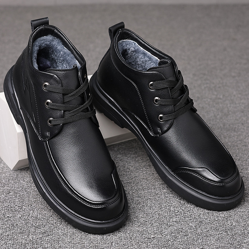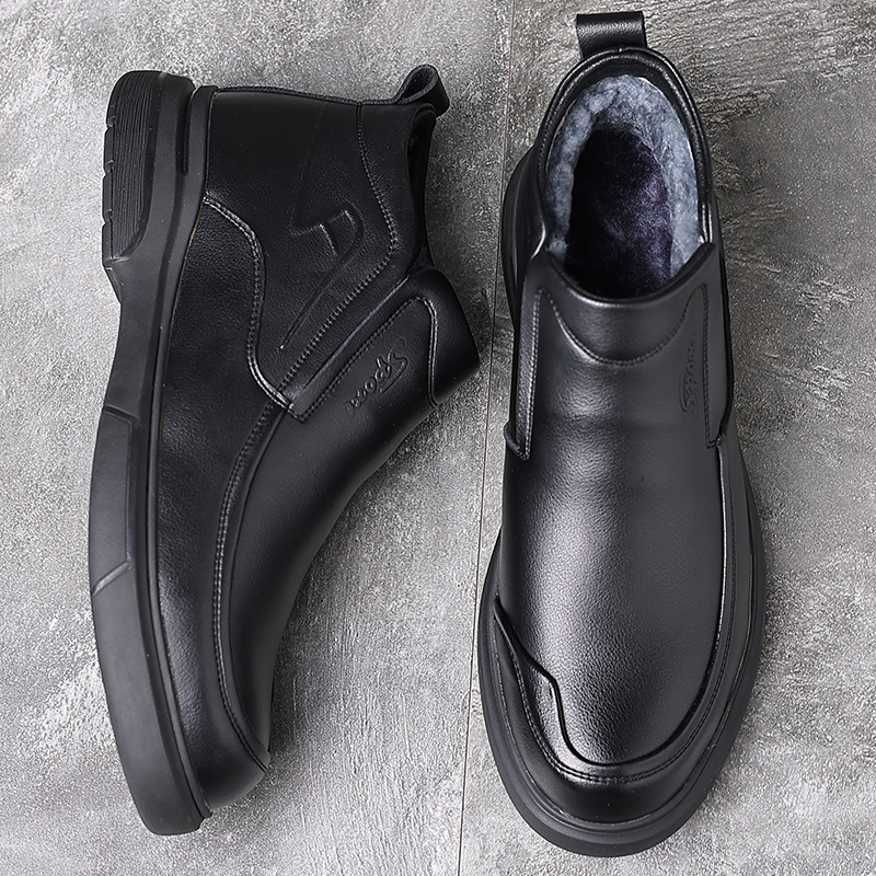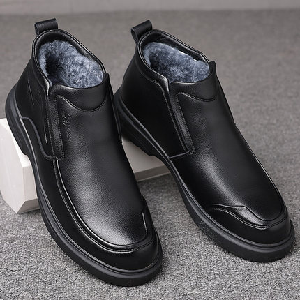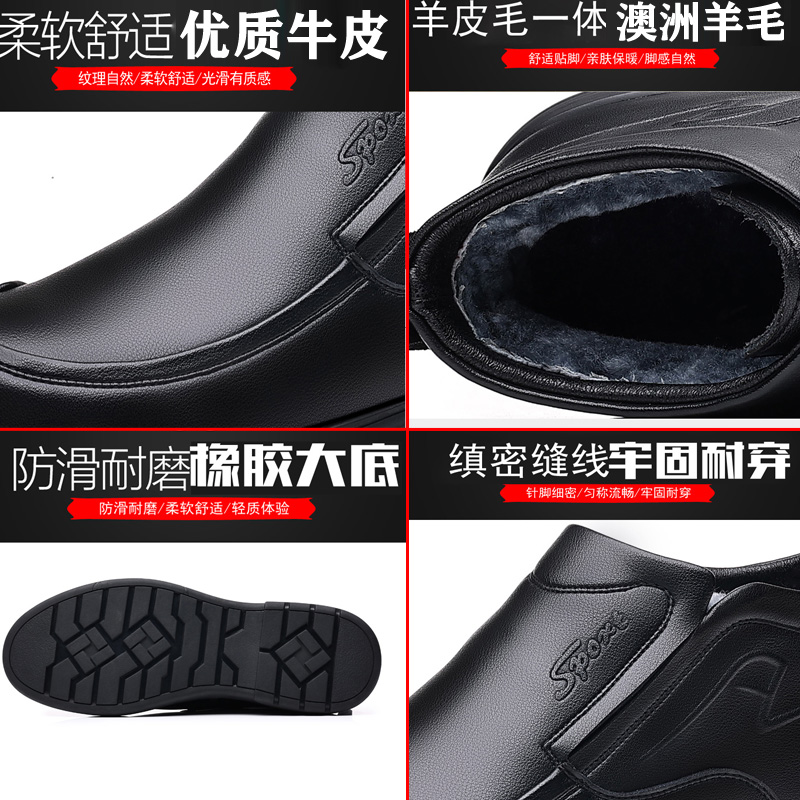 男士冬季新款棉鞋加绒保暖真皮休闲高帮羊皮毛一体中年爸爸棉皮鞋