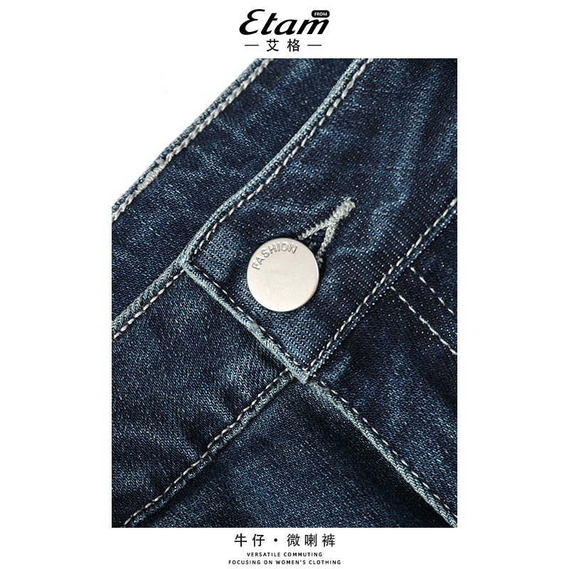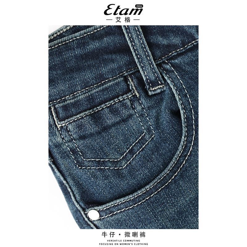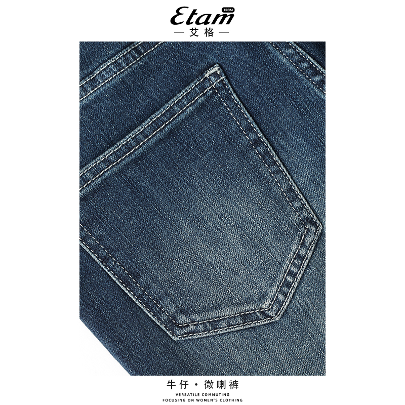艾格复古蓝色微喇牛仔长裤女2025春秋新款垂感弹力高腰显瘦喇叭裤