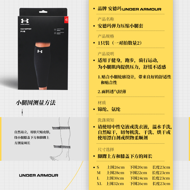 安德玛运动护小腿腿套男马拉松骑行护具女篮球跑步羽毛球防晒护套