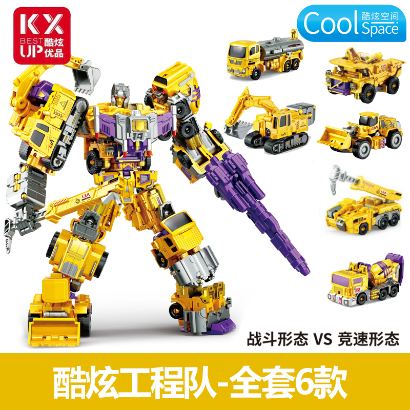 酷炫优品合金变形挖掘机搅拌车吊机工程队合体机甲儿童男益智玩具
