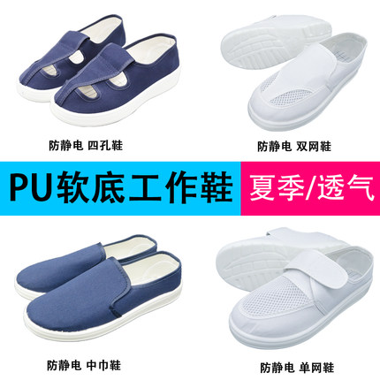 防静电鞋女士工作鞋夏季无尘鞋软底加厚劳保鞋夏季蓝色白色四孔鞋