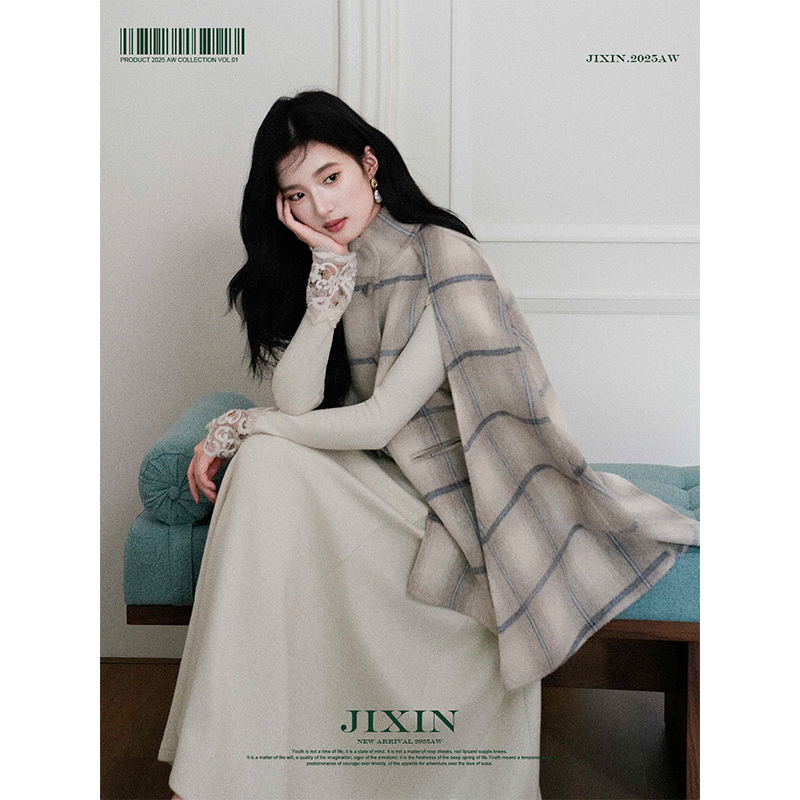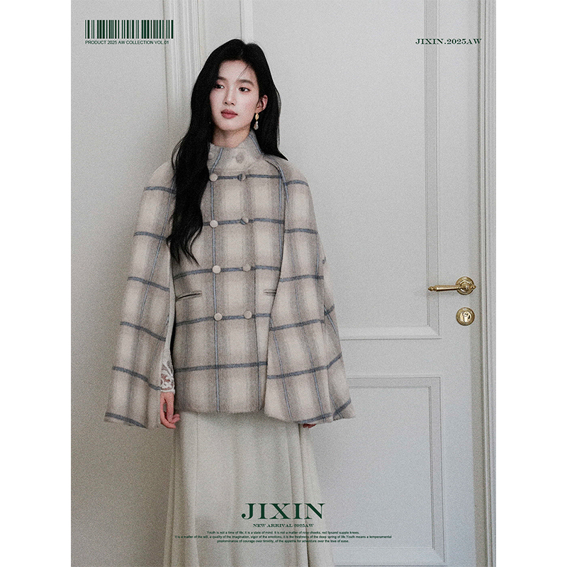 寄信/复古减龄格子双面呢羊毛/天丝大衣冬季新款英伦风毛呢外套女