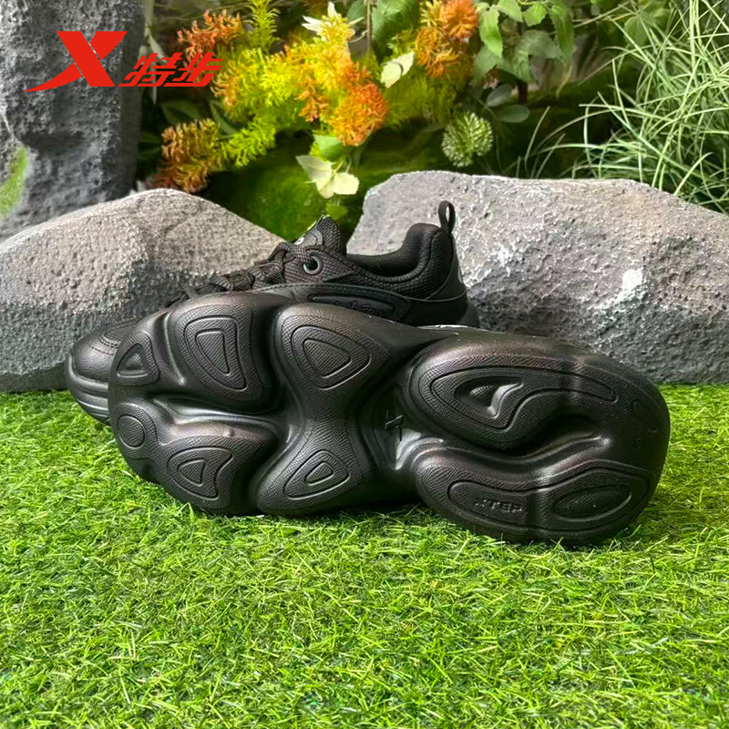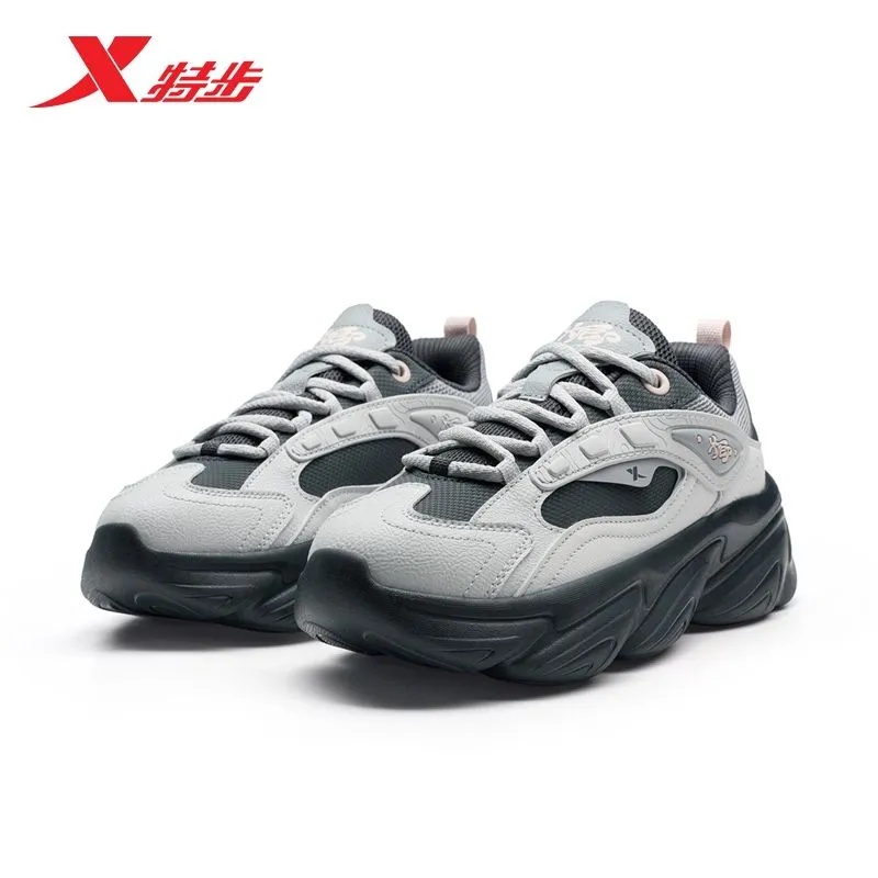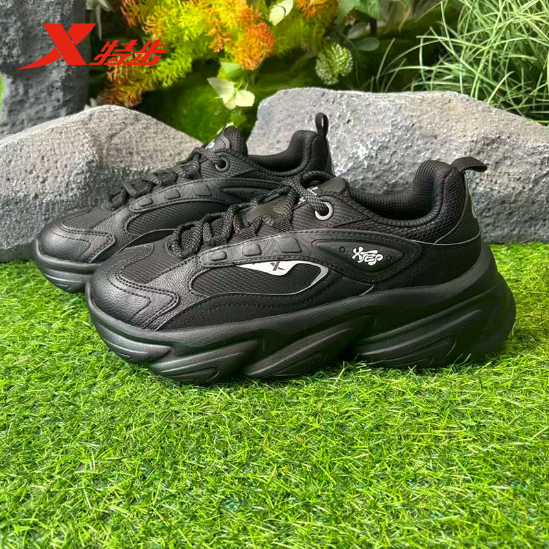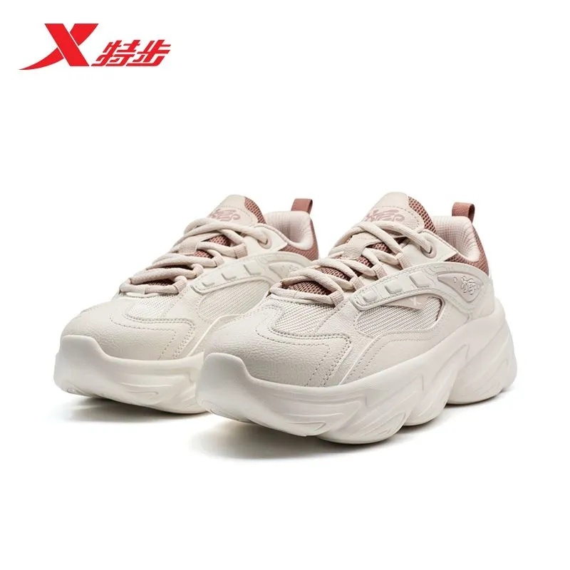 特步休闲鞋女2025秋季新款休闲皮面保暖女鞋蛋卷鞋975418320027