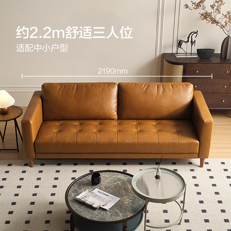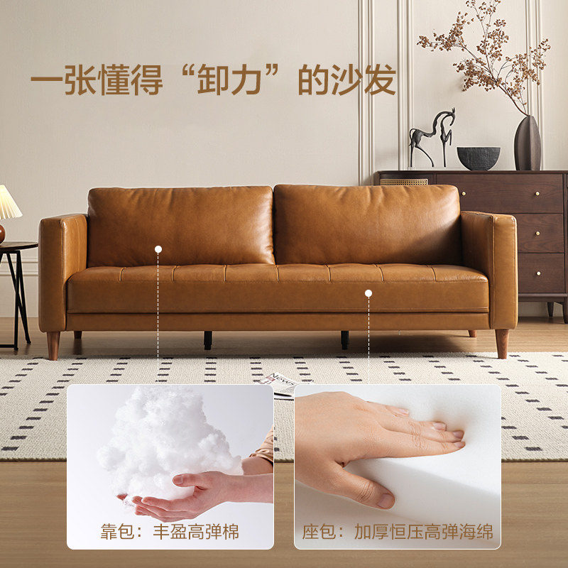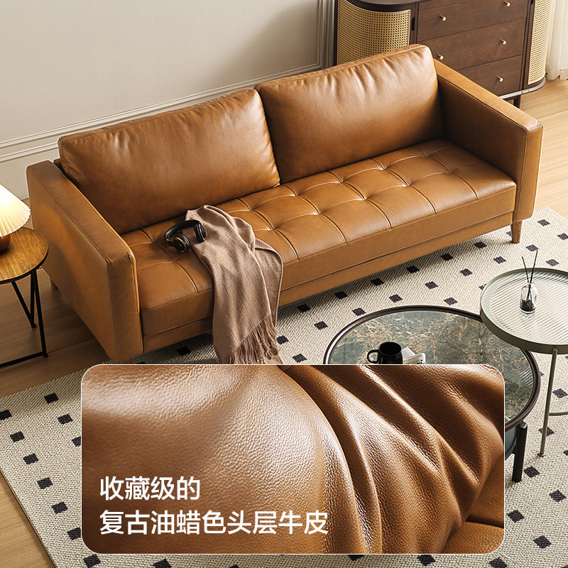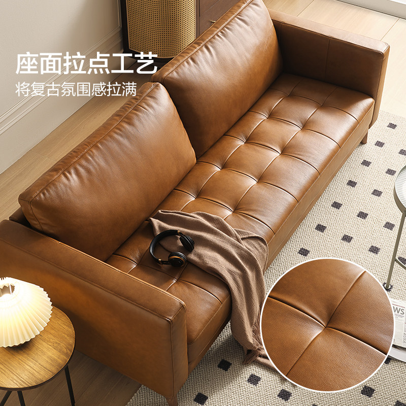 全友家居真皮沙发客厅复古风实木高脚头层牛皮沙发2025新款家具