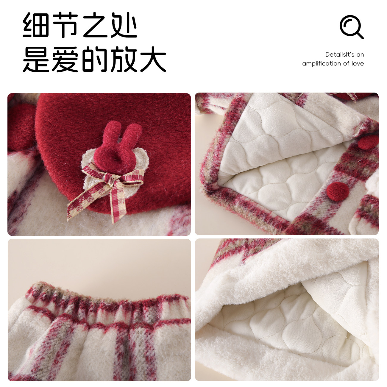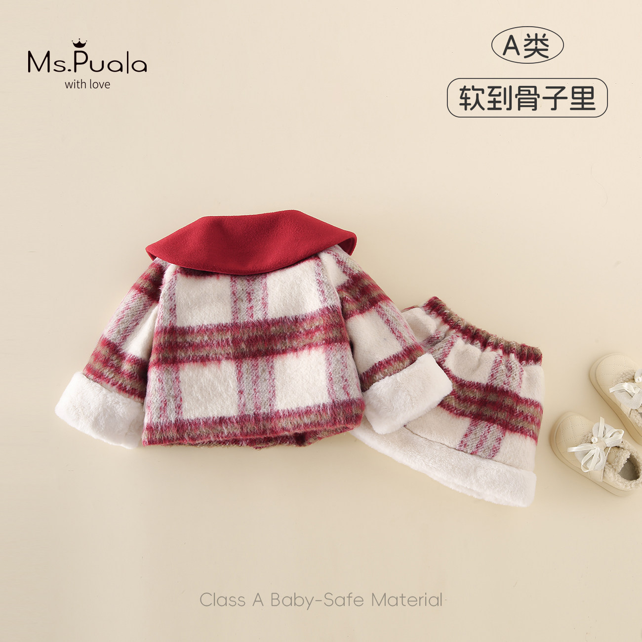 Ms.Puala女童拜年服套装外套裙子宝宝婴幼儿童秋冬格子两件套装