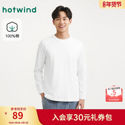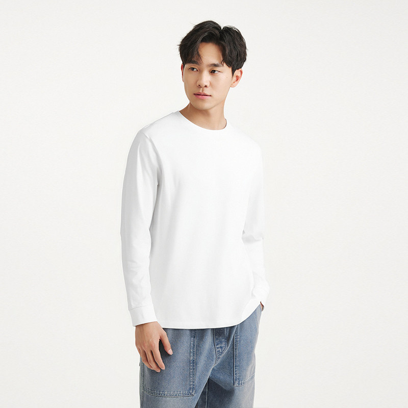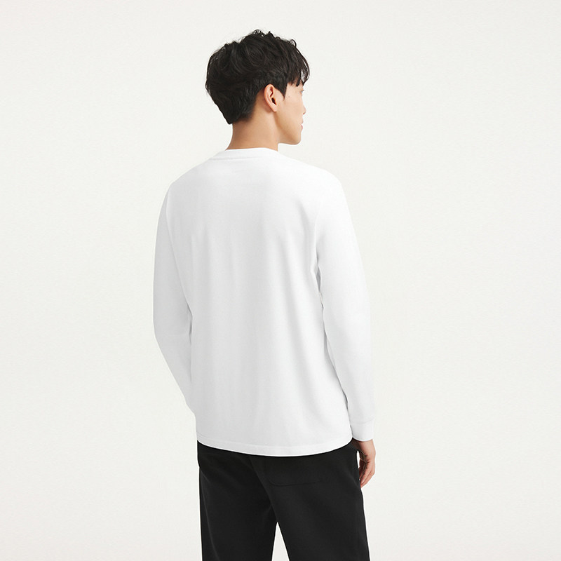 热风男士长袖T恤2026年春季新款简约基础款白色长袖T恤内搭打底衫