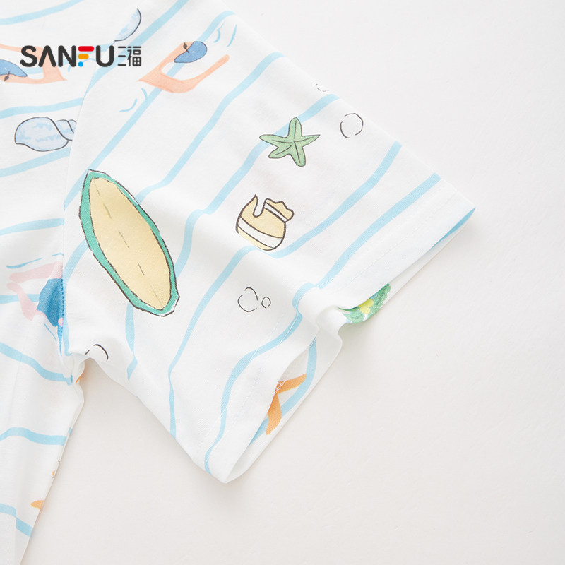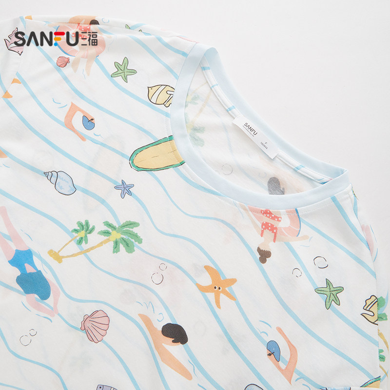 三福睡裙女生春夏季净雪花棉抗菌睡衣甜美印花宽松休闲短袖家居服