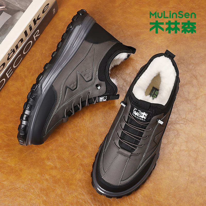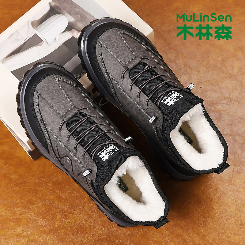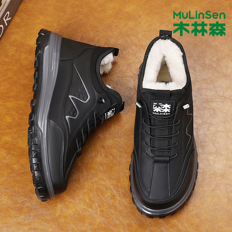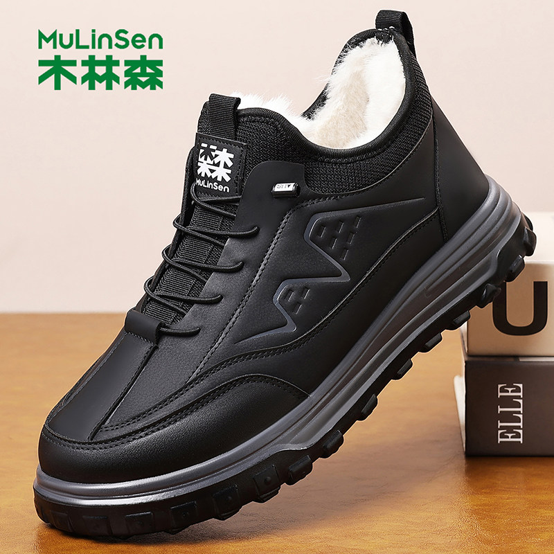 木林森棉鞋男款冬季防水厚底一脚蹬户外防滑保暖加厚加绒雪地靴男