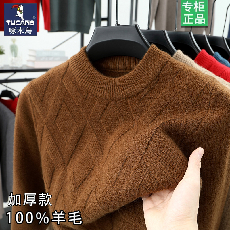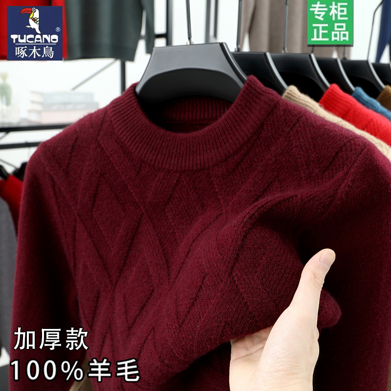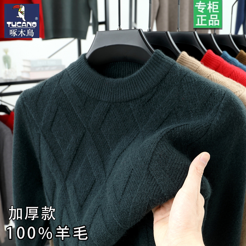 啄木鸟100%纯羊毛冬季加厚毛衣