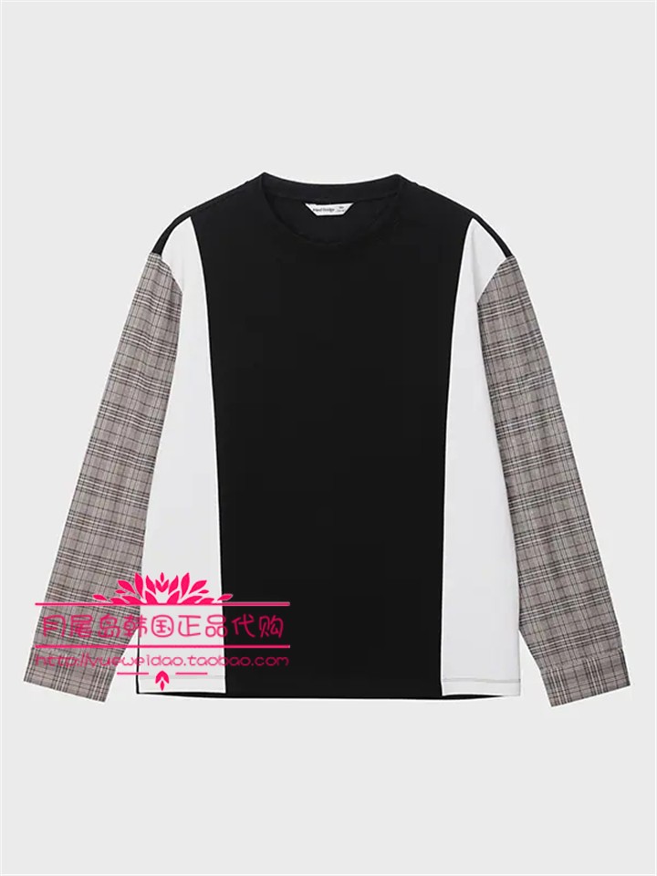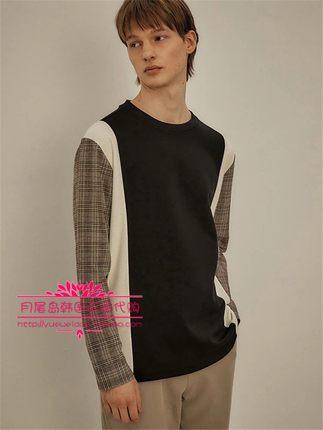 直邮Mind Bridge春秋男装韩国代购宽松圆领拼接长袖T恤MVTS6102