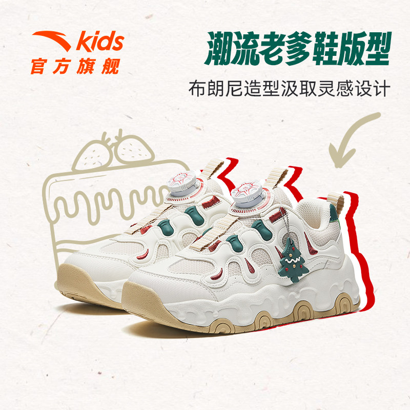 圣诞节布朗尼安踏儿童女童休闲老爹鞋2025秋冬新款运动鞋防滑跑鞋