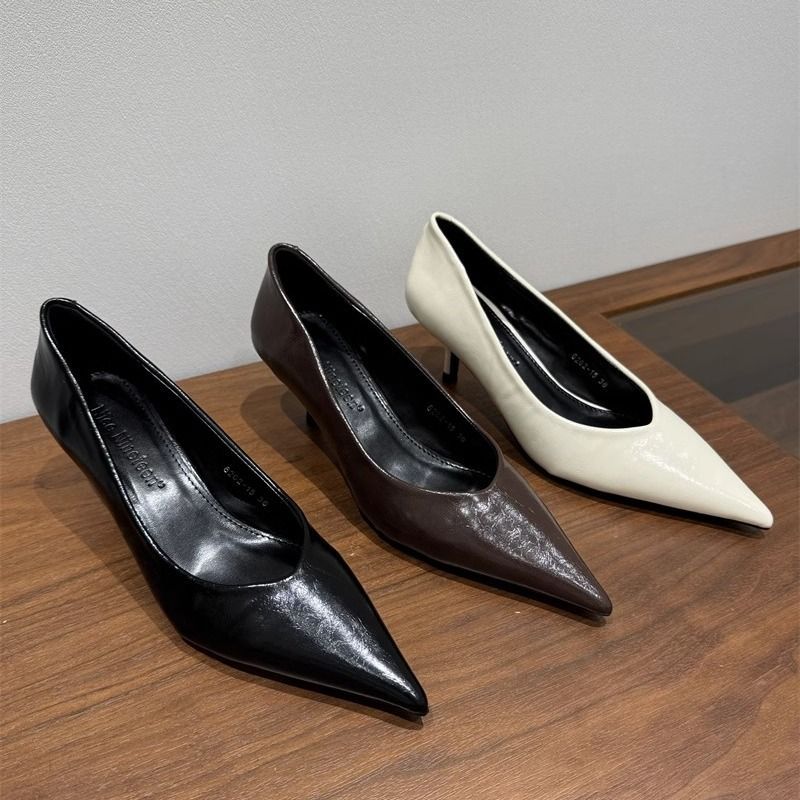 法式气质名媛黑色单鞋女鞋子2025新款春夏季尖头细跟棕色高跟鞋