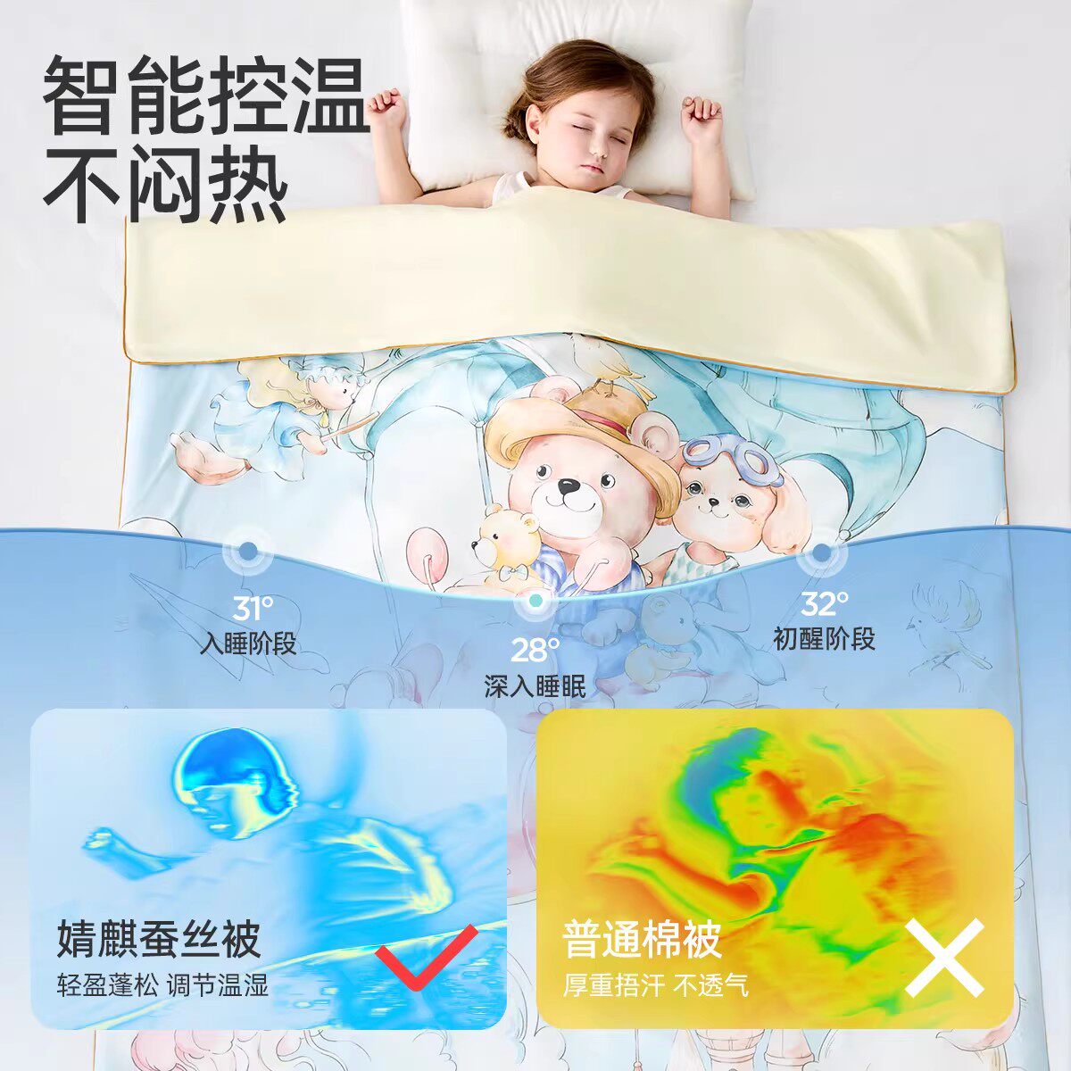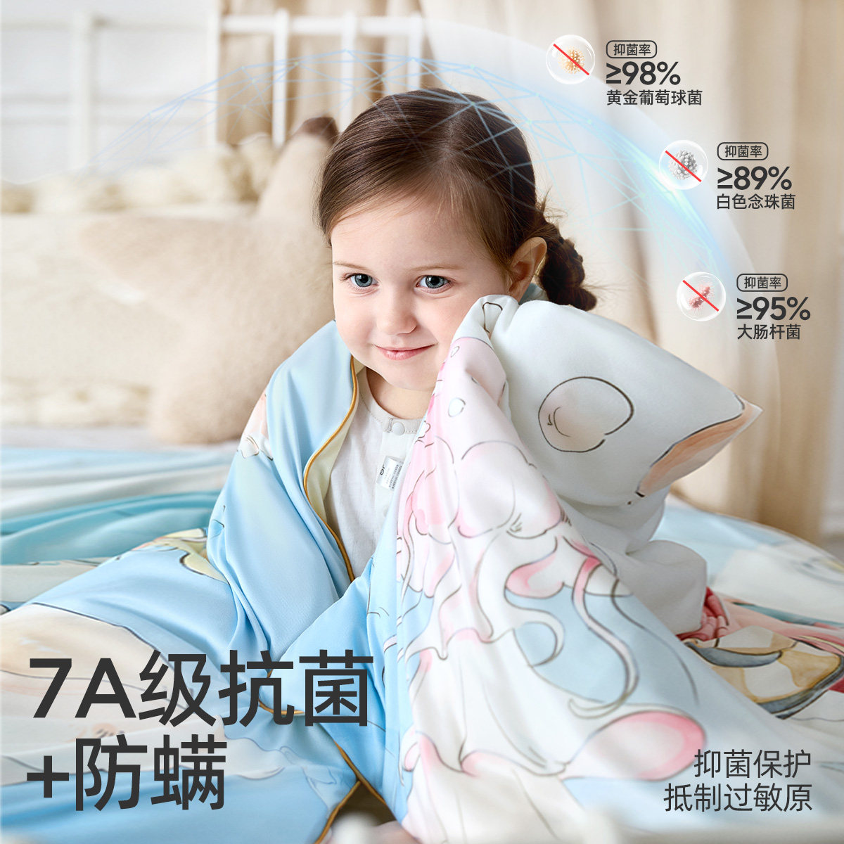 婧麒婴儿被子夏凉被宝宝新生a类四季通用幼儿园蚕丝儿童空调小被