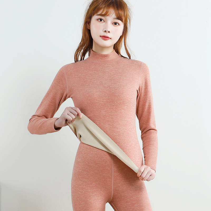 中高领德绒保暖内衣女套装加厚加绒无痕发热秋衣秋裤打底纯棉毛衫
