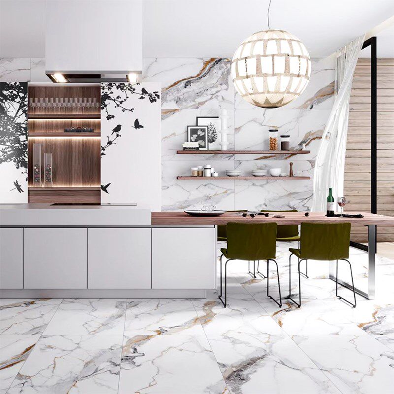 法式风卡拉拉金白色仿大理石纹瓷砖客厅厨房卫生间地砖背景墙墙砖