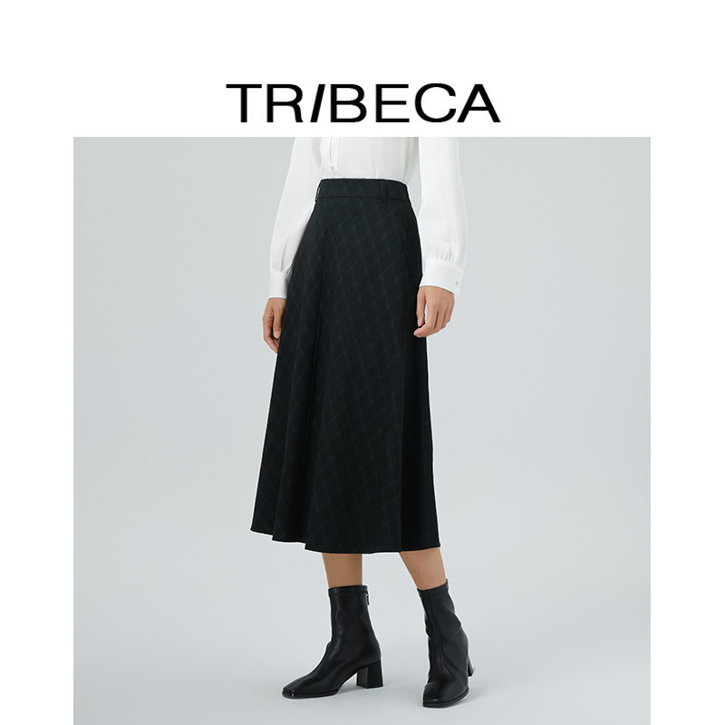TRIBECA翠贝卡2025秋新款商场同款高腰显瘦中长款a字伞摆半身裙