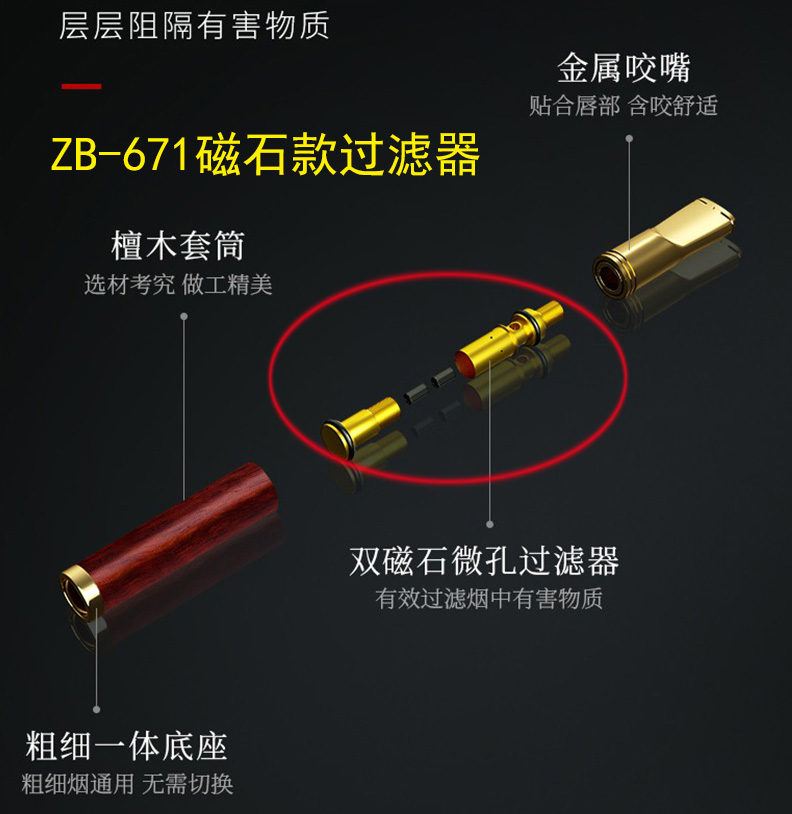 zobo正牌烟嘴过滤器原装配件滤芯多种粗细两用粗中细三用金属咬嘴