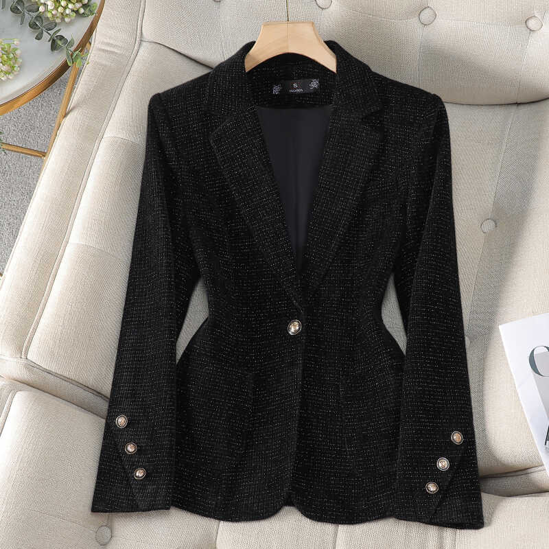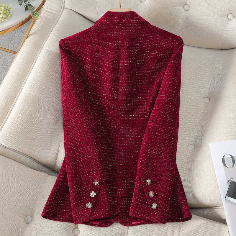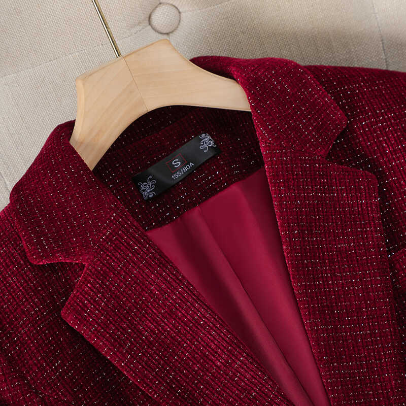 时尚洋气红色金丝绒西装外套女秋冬新款高端轻奢上镜百搭气质西服