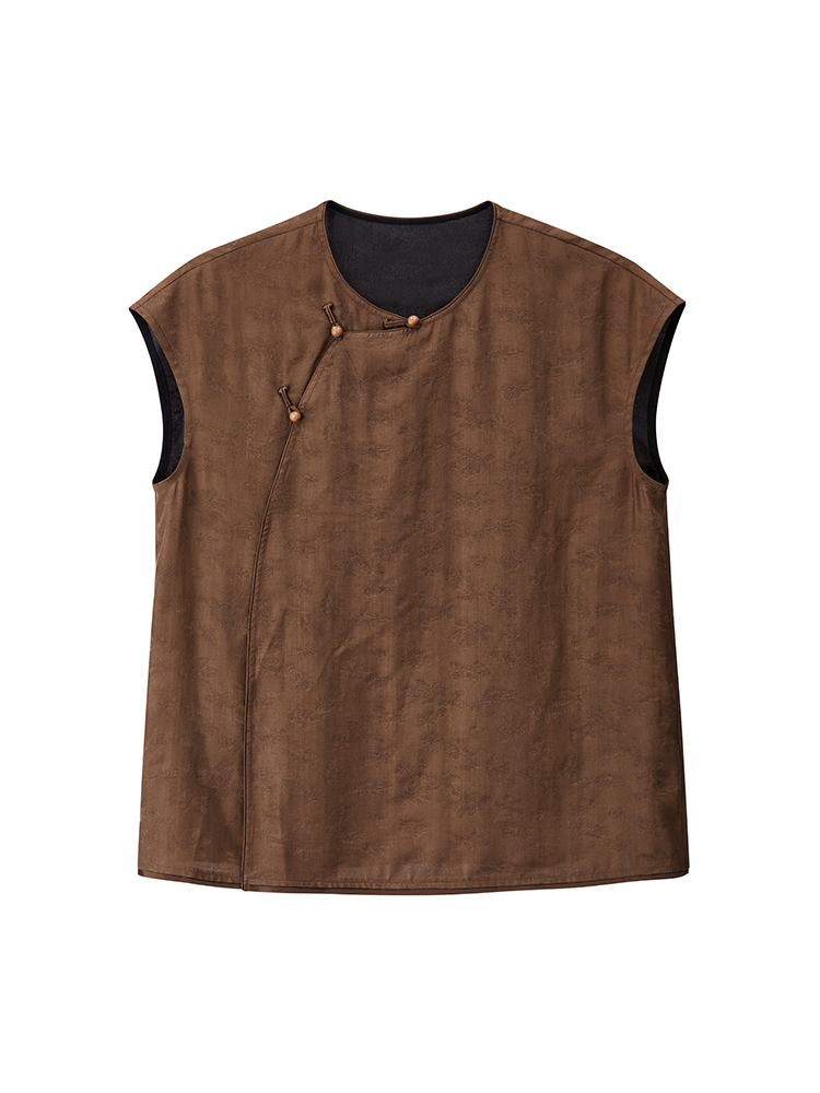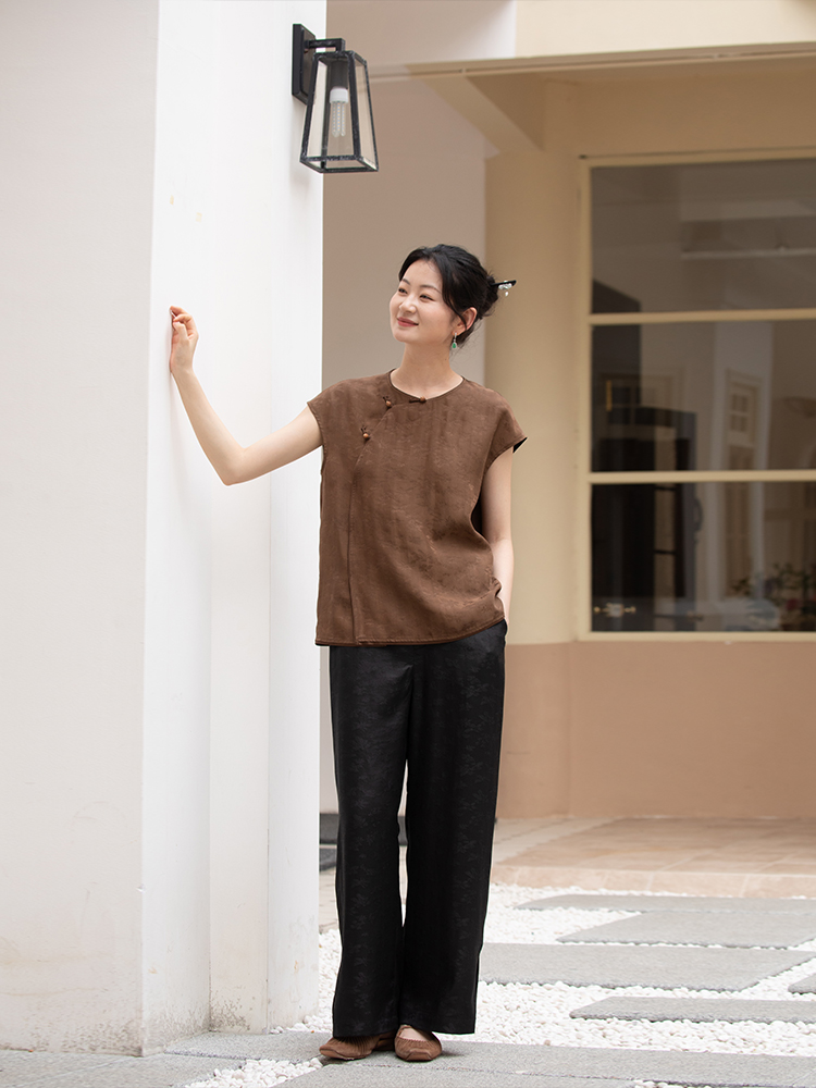 布小匠原创女装2024新款新中式短袖香云纱背心国风桑蚕丝真丝上衣