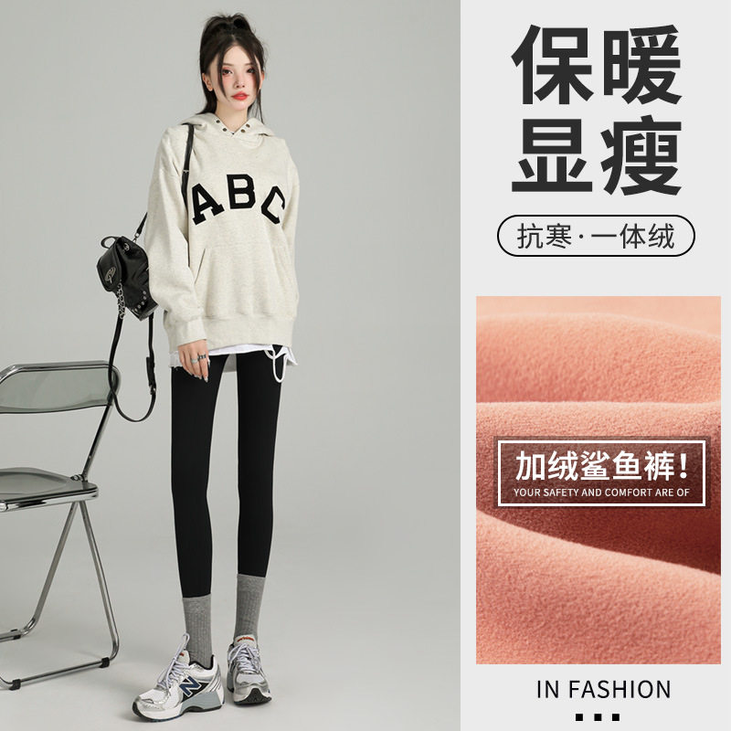鲨鱼裤加绒女秋冬粉绒芭比裤