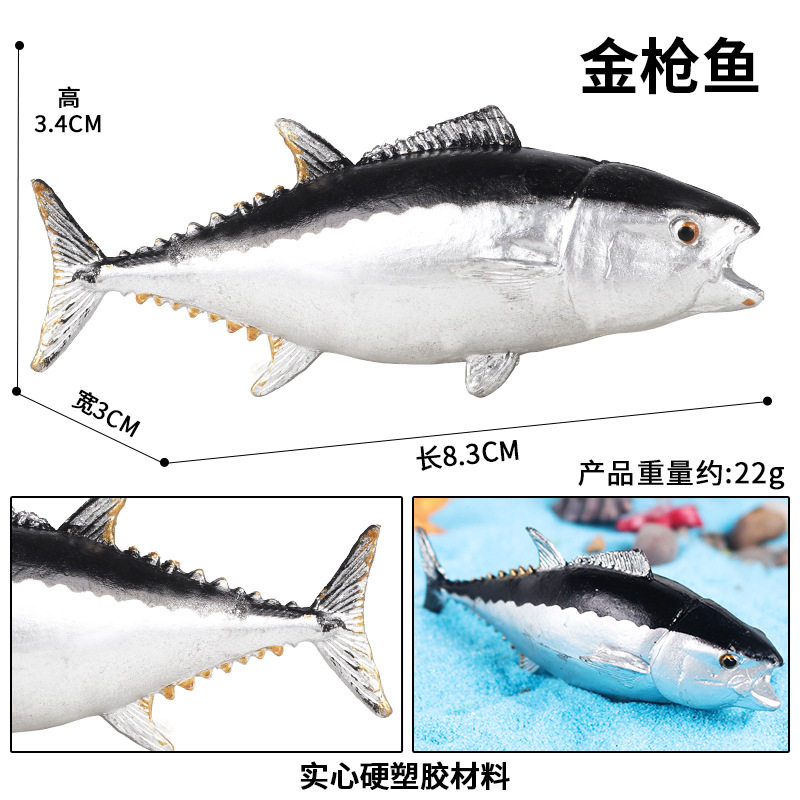 仿真实心蓝鳍金枪鱼吞拿鱼儿童认知海洋动物模型鱼缸造景装饰摆件