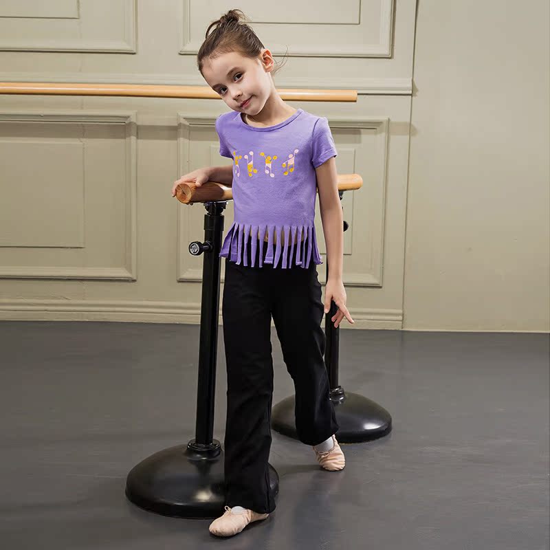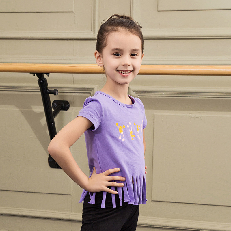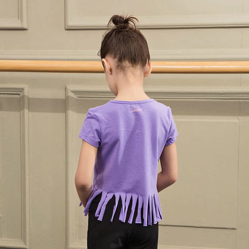 断码清仓 三沙儿童女短袖T恤圆领印花芭蕾舞蹈服训练服上衣