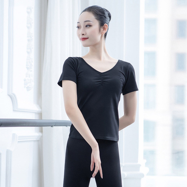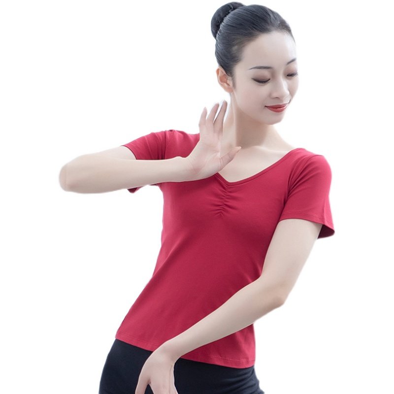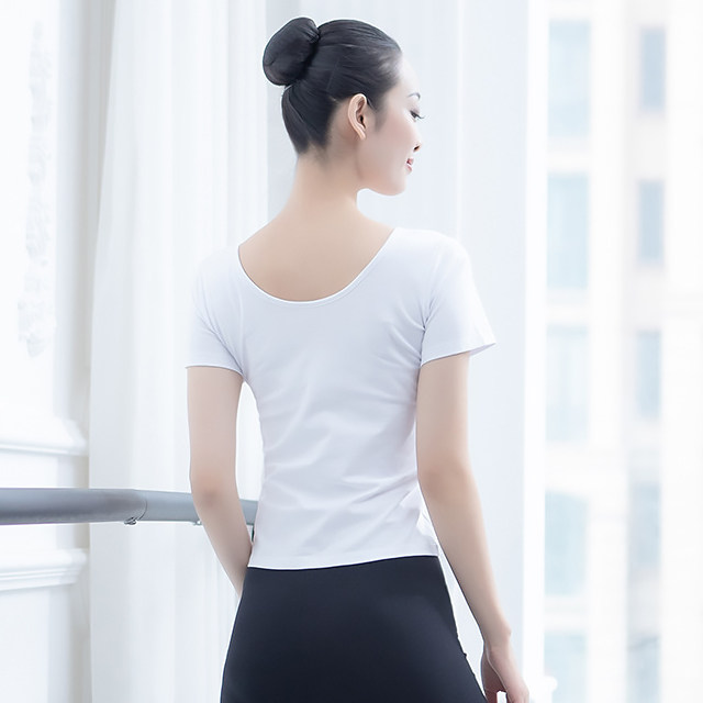 舞蹈练功服女短袖形体训练芭蕾上衣棉成人现代拉丁瑜伽艺考服装夏