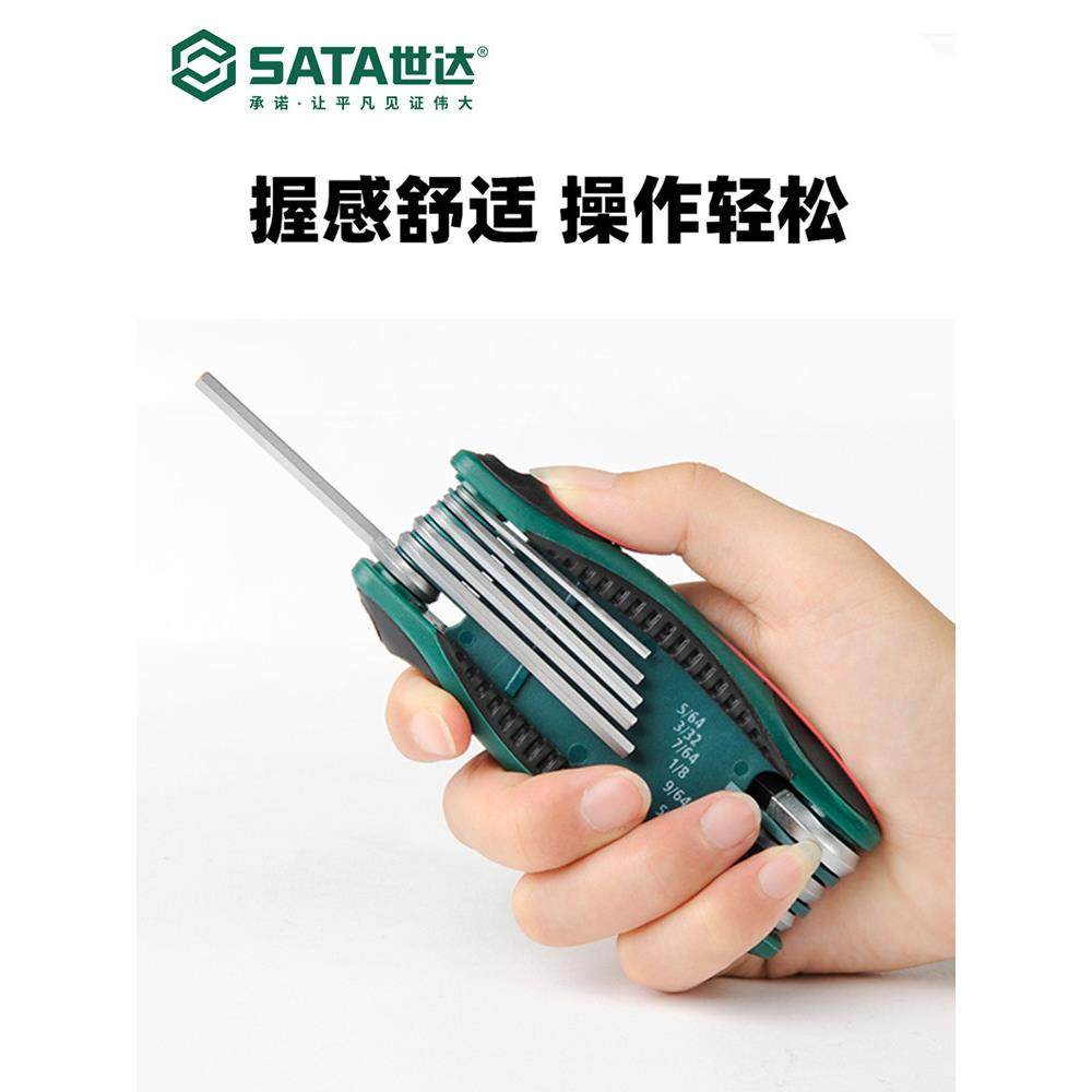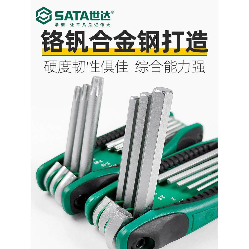 Sata可折叠六角扳手套装英制六角键公制中孔梅花形六角扳手