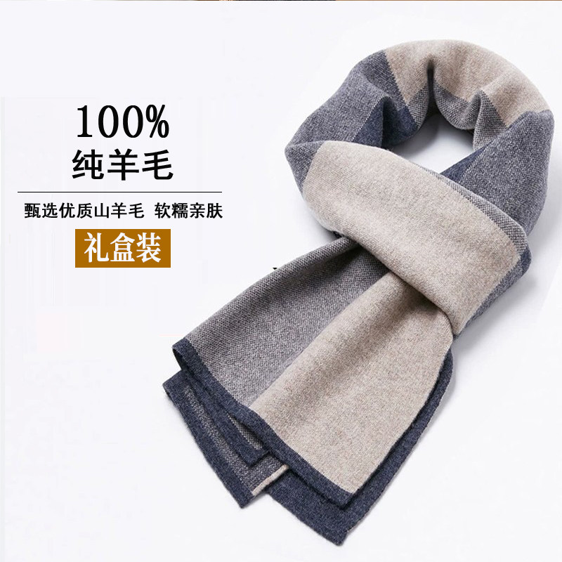 鄂尔多斯市100%纯山羊毛围巾男士冬季韩版羊绒加厚保暖高档围脖女