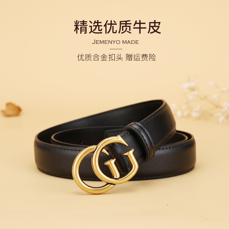 秦岚同款皮带女士2025新款配牛仔裤带时尚百搭装饰黑色真皮腰带女