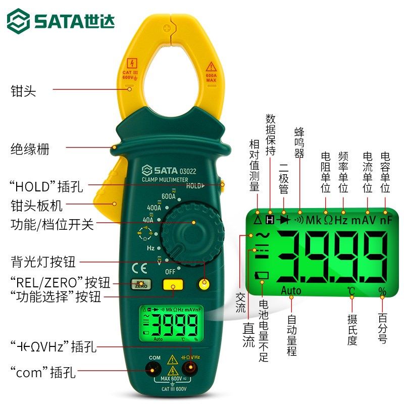 世达钳形万用表高精度数字钳形表多功能交直流小型钳式钳型电流表